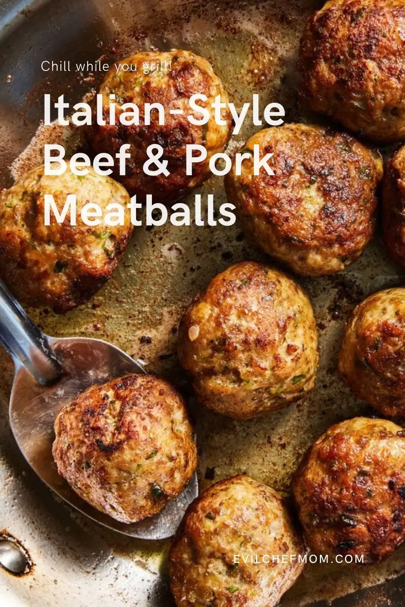 • Combine eggs, onion, panko, parsley, Parmesan, garlic, Italian seasoning, salt and pepper in a large bowl. Add beef and pork. Mix gently with your hands until just combined (do not overmix). Using a generous 2 tablespoons each, shape into 48 meatballs. Place 1 inch apart on the prepared baking sheets.